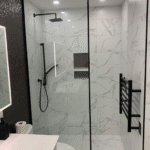 Cette belle salle de bain dans un petit quartier de Montréal à été innové et modernisé